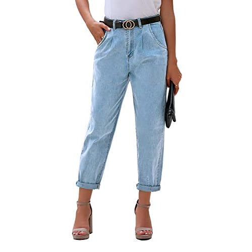 luvamia Mom Jeans for Women Trendy High Waisted Stretchy Loose Jeans for Women Denim Pants Large A Airy Blue