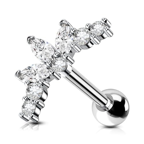 OUFER Butterfly Helix Piercing Jewelry,16G Surgical Steel Cartilage Earrings, Chain Dangle Tragus Earrings, Clear CZ Forward Helix Jewelry for Women S