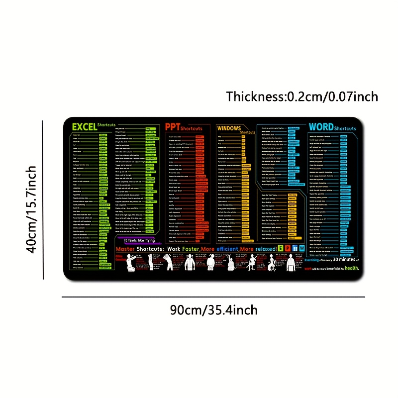 TEMU 1 ks Kancelářský designový software Myš Zkratky, Velká protiskluzová podložka na stůl, Zkratky pro Word/Excel/Word kancelářský software, Windows