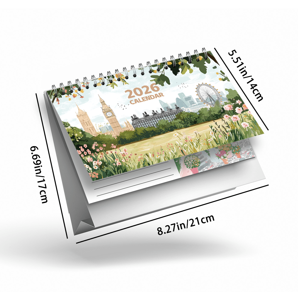 TEMU 1pc, , Hand-painted Travel Desktop Calendar – Landscape Calendar, Standing Calendar / Desktop Calendar / Table Calendar, 12 Different Exquisite