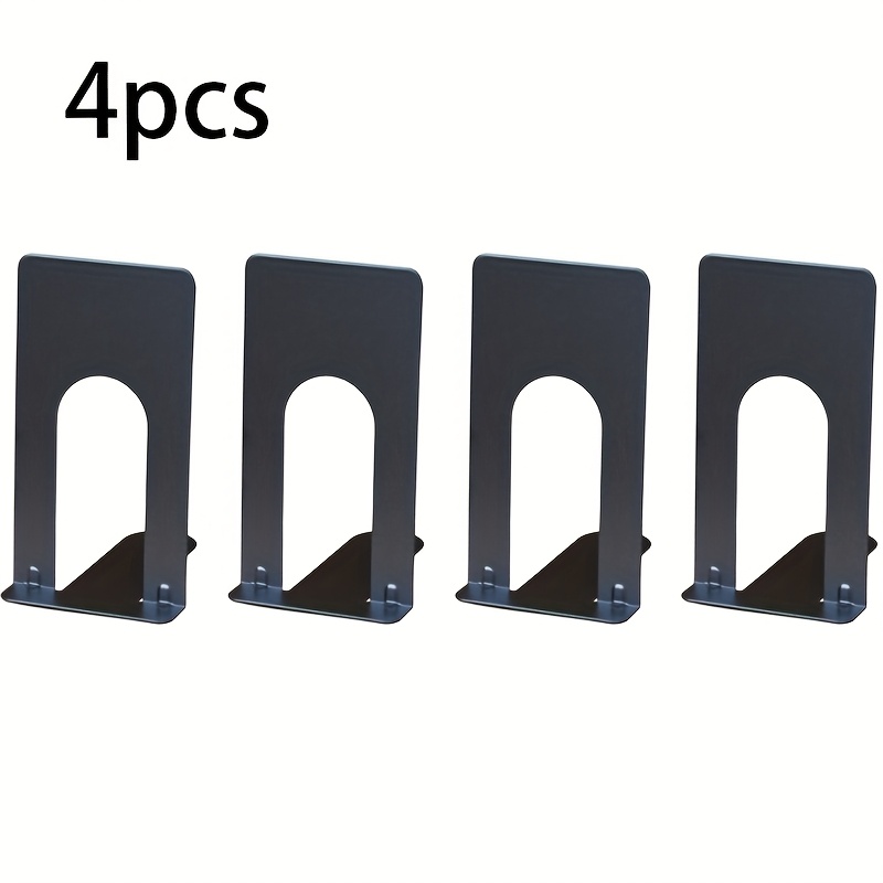 TEMU 4pcs Of Black Metal Bookends, Bookends, Supplies, Office Desktop Supplies, Office Bookends And Bookshelves, Bookends, Bookshelf Book Clips, Book