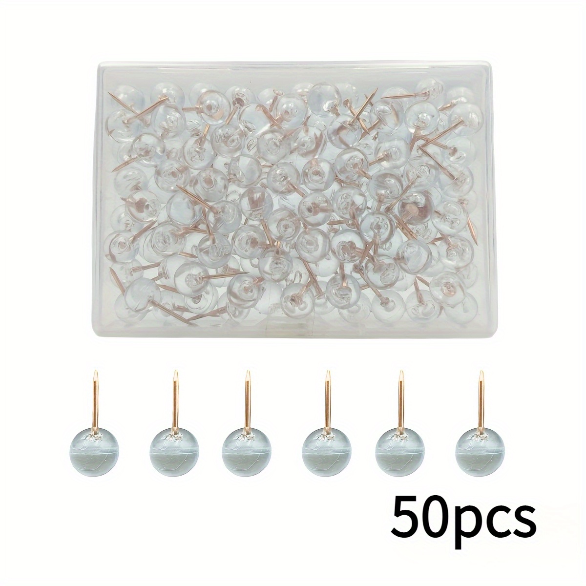 TEMU 50pcs Transparent Push Pins With Plastic Box, Round Head Pins, Corkboard Push Pins, Transparent Large Head Pins, Drawing Board Fixing Pins,