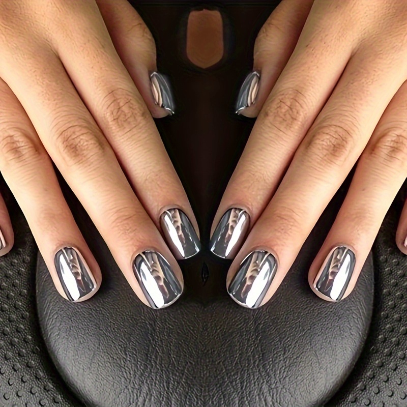 TEMU European And Electroplated Wearable Nails Finished Short Silvery Wearable Patch Nail Art