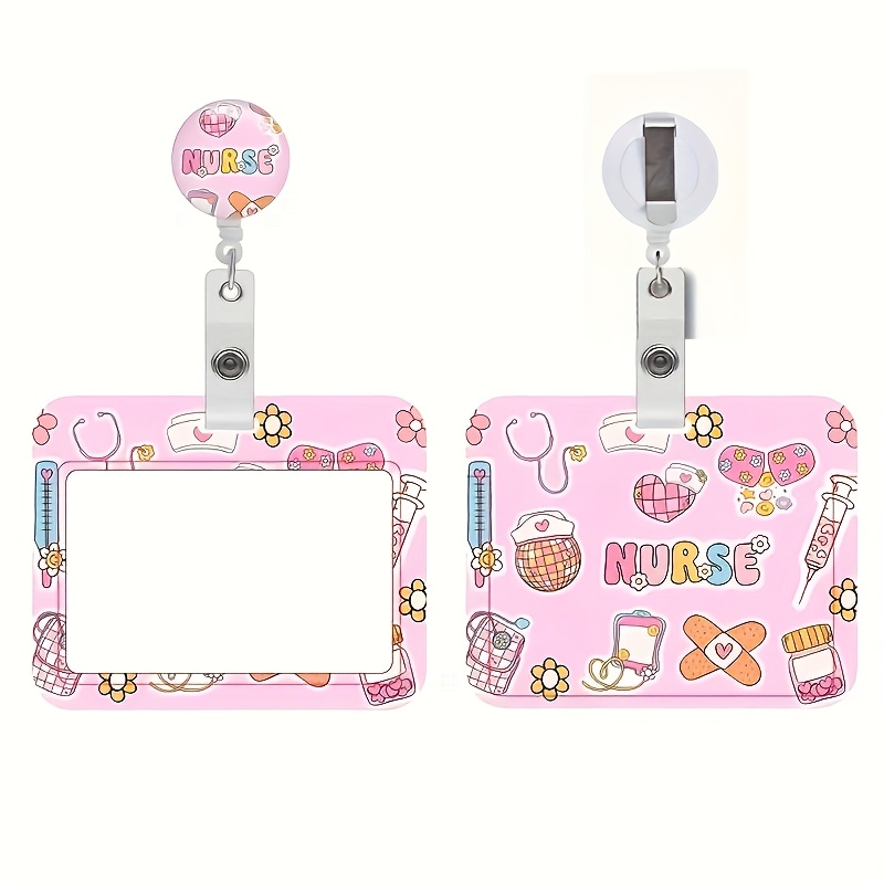 TEMU 2d Flat, Couple Stitch Doctor Nurse Teacher Badge Medical Cute Retractable Id Badge Reel Office Supplies