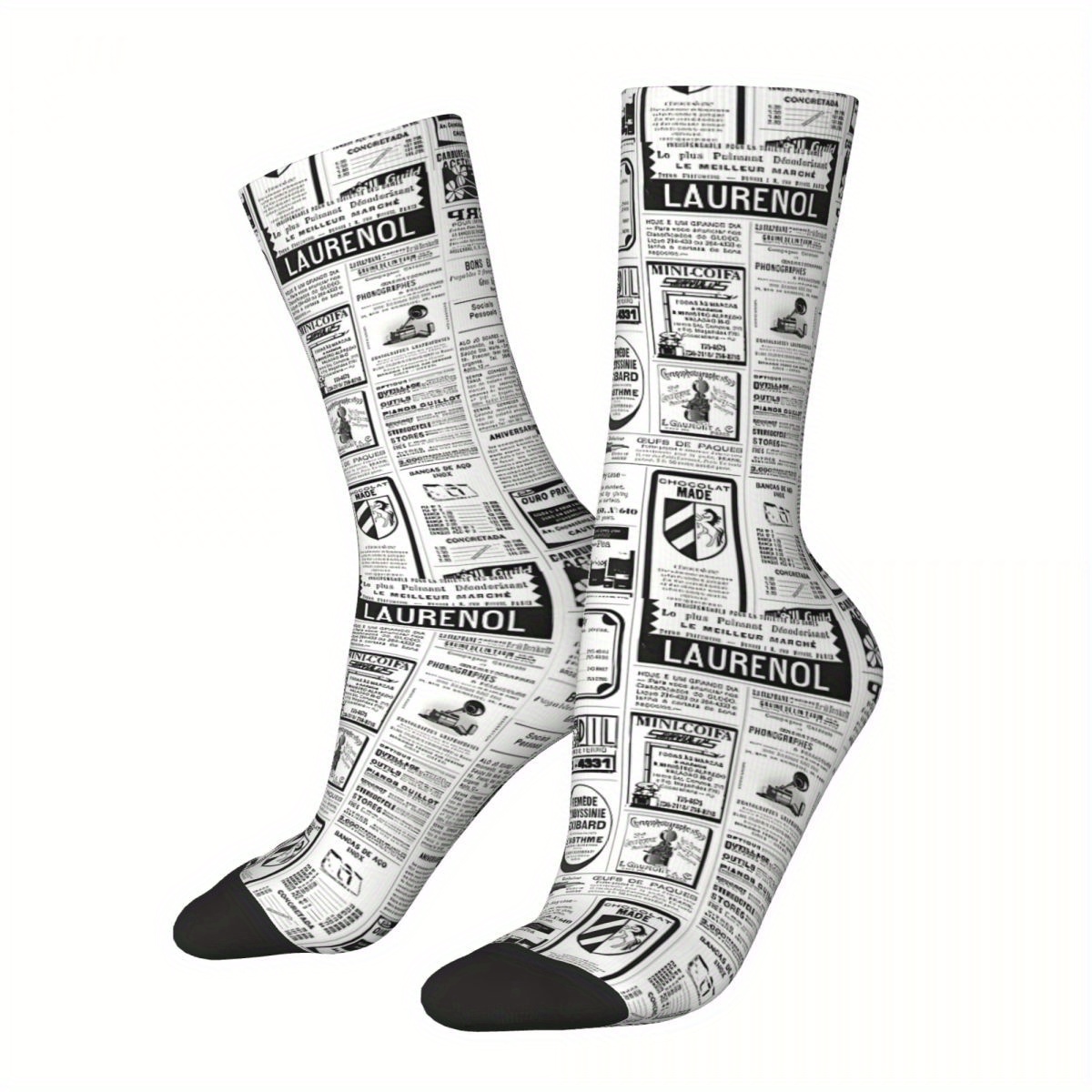 TEMU Old Newspaper Sock Printed Man Polyester