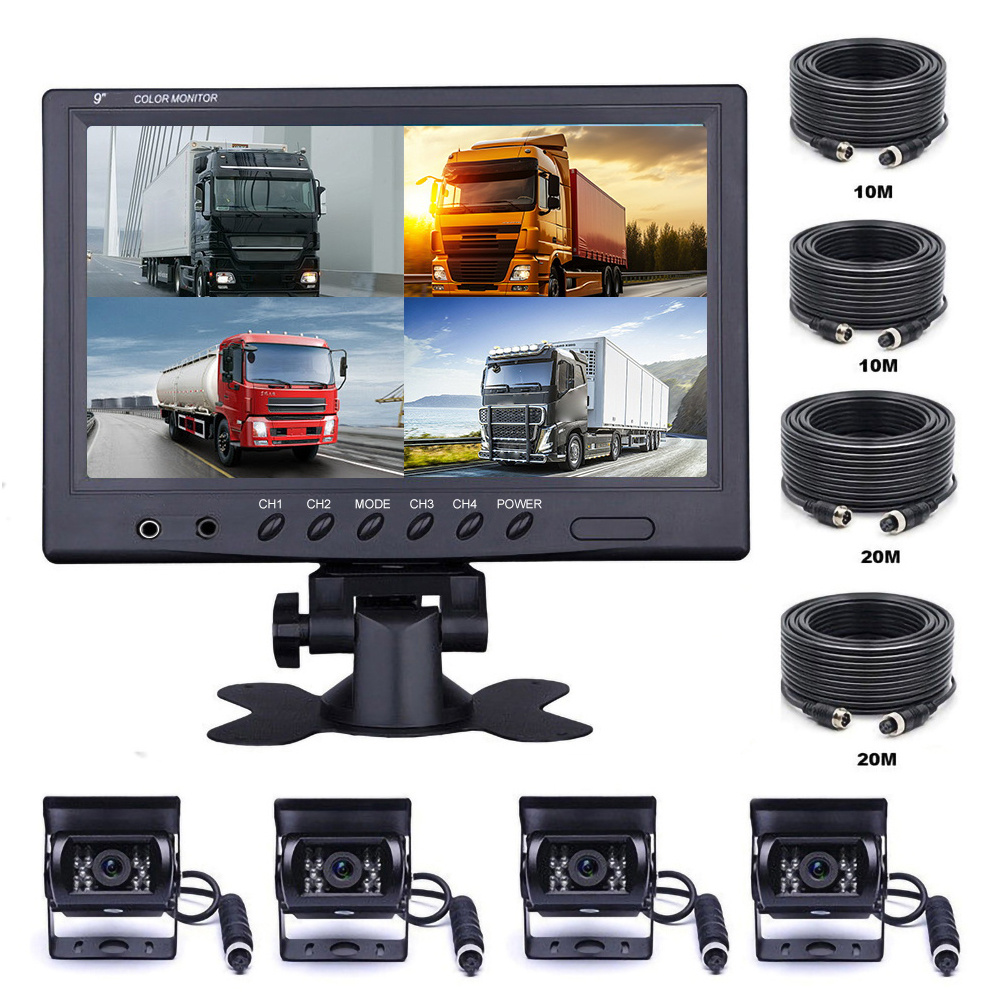 TEMU Vehicle Backup Camera 9” Split Monitor Vehicle Backup With 4x4pin 18 Ir Night Vision Reversing Cameras For Trucks/ Rv/ Trailer/ Bus