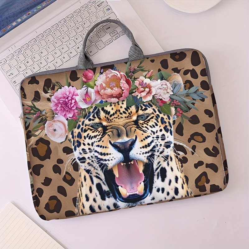 TEMU 1pc, Laptop Case With Leopard Print, Fabric Briefcase Cover For 14-inch Laptops, Soft Zippered Cover For Laptops And Tablets