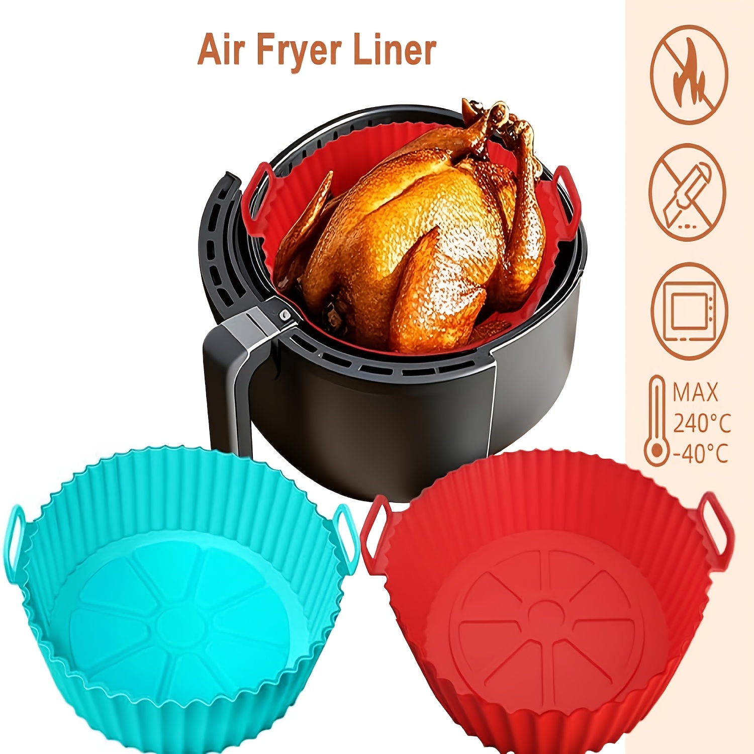 TEMU 2 Pack Air Fryer Silicone Liners, Large Size Silicone Air Fryer Liners Compatible With Most Air Fryers (red And Blue)