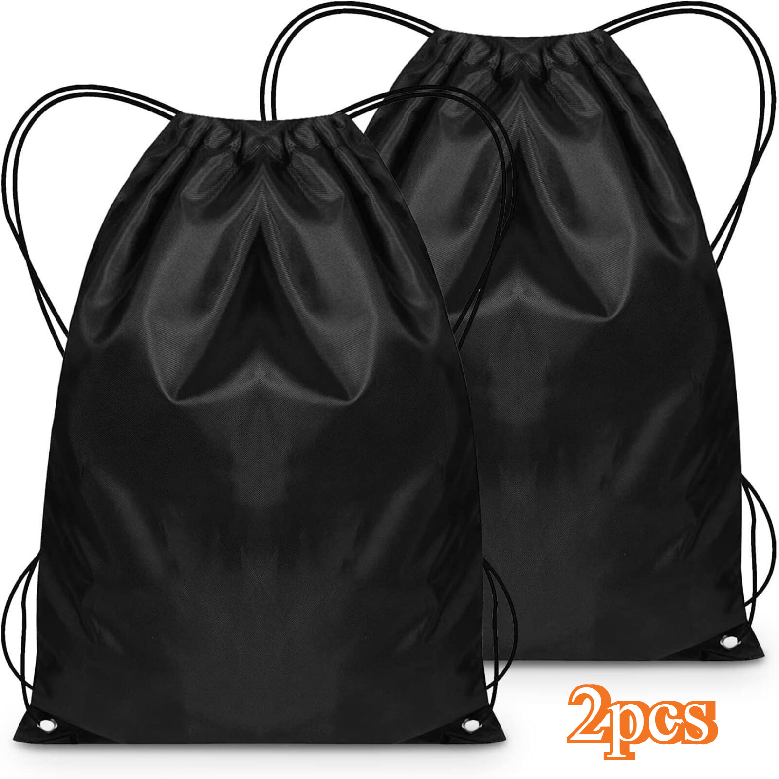 Temu – TEMU 2pcs Black Drawstring Gym Bags With Utility Pockets – Soft Polyester, Perfect For Sports, Gym, Travel, And Swimming Gear Storage, Gym Gear