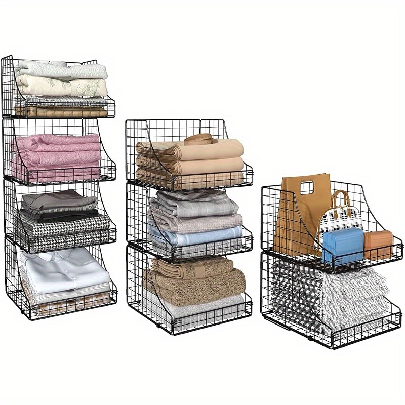 TEMU 4-pack Stackable Wire Baskets For Closet Organizers And Storage, Open Storage Bins For Clothes,, And Snacks- Rustic Metal Closet Organizers And