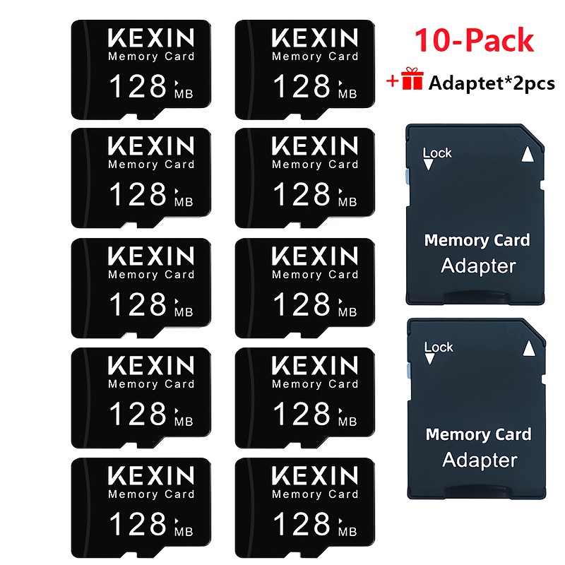 TEMU Kexin [10-pack]tf Cards 128mb Flash Memory Cards Transfer For Tablets, Smartphones, Dash Cameras, Cameras Includes 2 Adapters